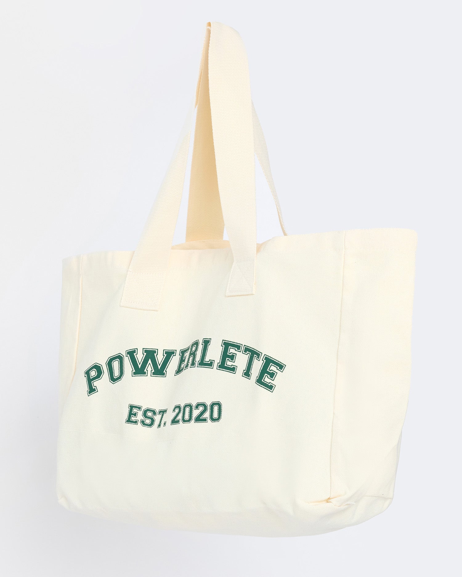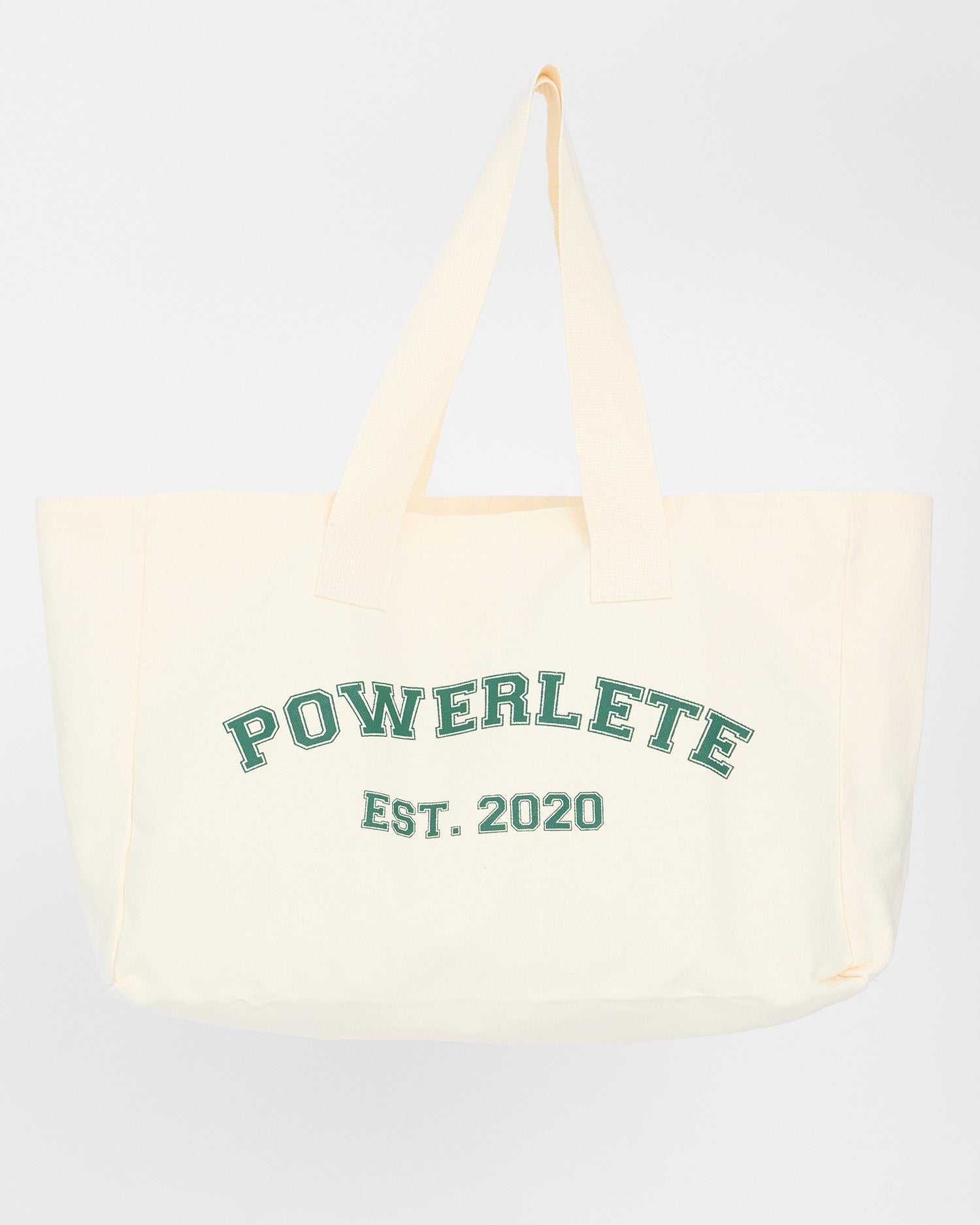 Meet the Powerlete Varsity Tote - your new everyday essential. In a neutral beige with a bold forest green varsity logo, this tote is the perfect blend of style and function. Whether you’re hitting the gym, running errands, or heading out, it’s built to keep up with your busy lifestyle. Practical, durable, and effortlessly cool, it’s your go-to bag for whatever the day throws at you.